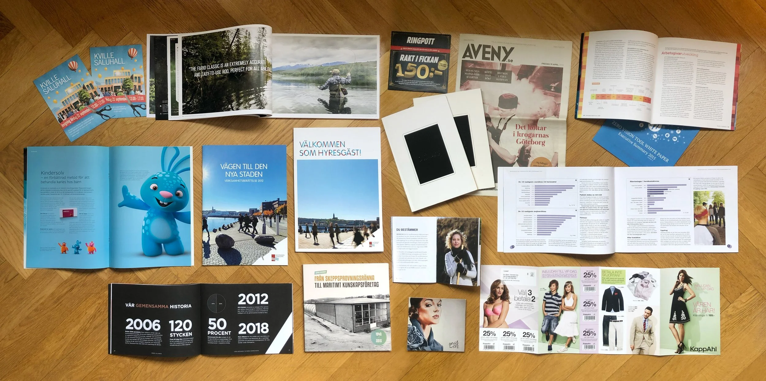 I started my professional career as a magazine layout designer and I am well acquainted with print production. Here is a selection of different printing material and corporate identities that I designed over the years.